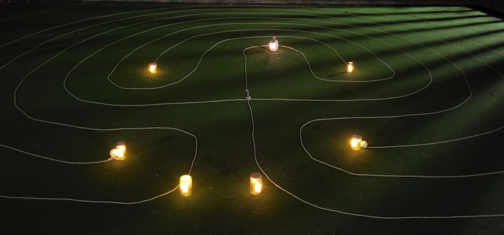 Voor sommige mensen is de donkere periode van het jaar een periode waarin ze niet de beste versie van zichzelf zijn. Somberheid en de zwaarte van het leven extra voelen liggen op de loer. We hebben stilgestaan bij hoe je ervoor kunt zorgen dat je als het buiten zo donker is, het licht in jezelf brandend kunt houden. Tijdens het lopen van het labyrint ontbrandden de deelnemers hun innerlijke licht en staken in het midden van het labyrint letterlijk hun lichtje aan.