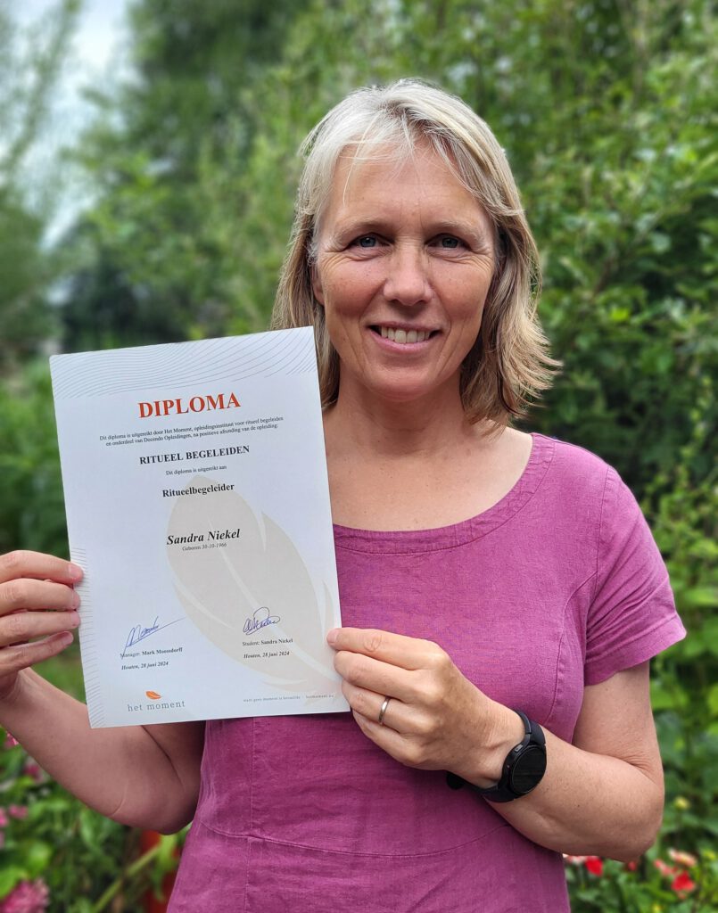 Sinds 28 juni 2024 ben ik officieel een ritueel begeleider. Ik heb mijn diploma met vlag en wimpel gehaald.