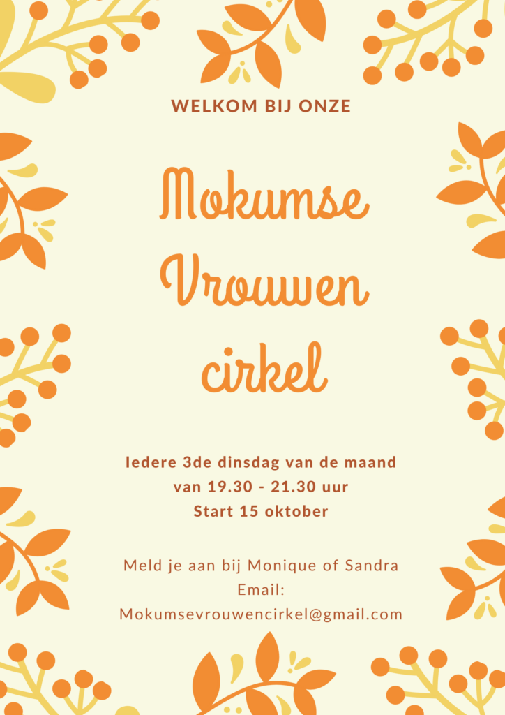 Samen met een vriendin heb ik een vrouwencirkel opgezet genaamd ‘Mokumse vrouwencirkel’. Half oktober gaan we er echt mee van start, maar de opzet ligt klaar en de eerste vrouwen hebben zich aangemeld.